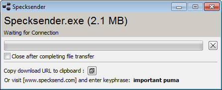 Specksender needs to be on for the recipient to download from!